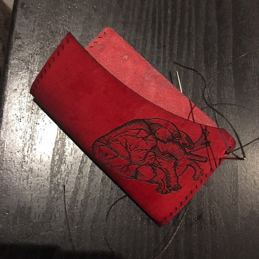 Anatomical Heart Single Pocket Leather Card Holder Black with Red