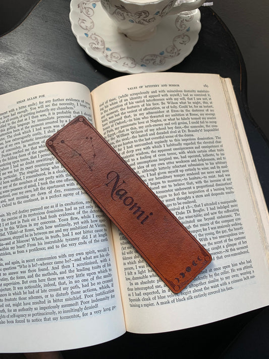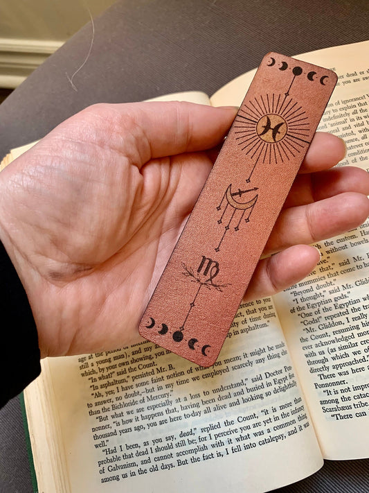 Astrology Big Three Leather Bookmark with Custom Sun Sign, Moon Sign, and Rising Sign