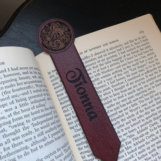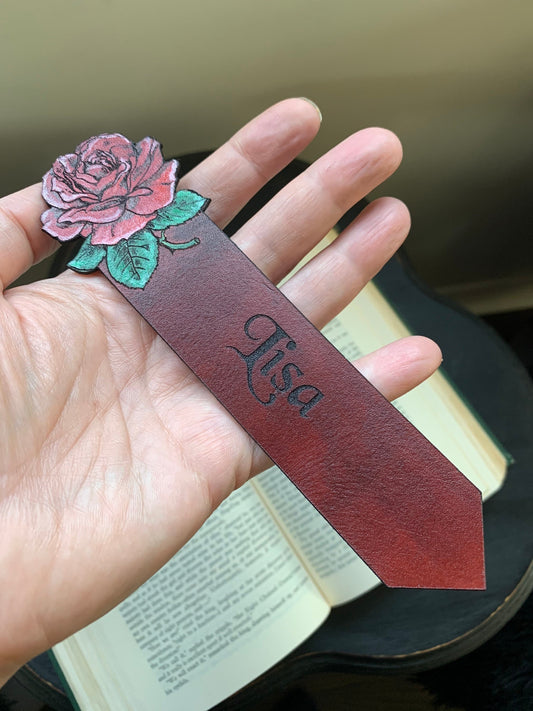 Roses and Thorns Leather Bookmark with Custom Text