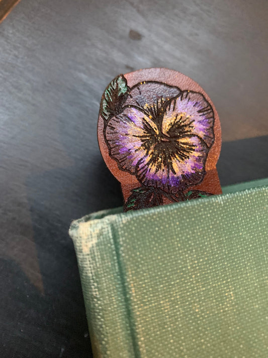 Pansy Leather Personalised Bookmark
