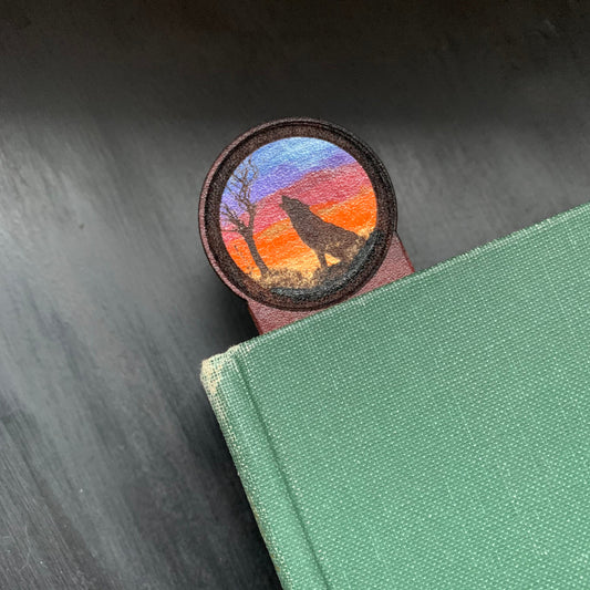 Sunset Wolf Personalized Leather Bookmark