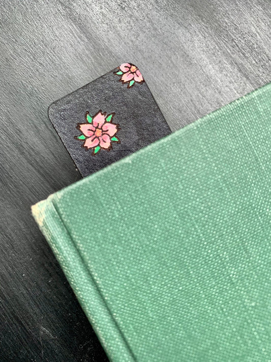 Sakura Leather Bookmark with Hand Painted Cherry Blossoms