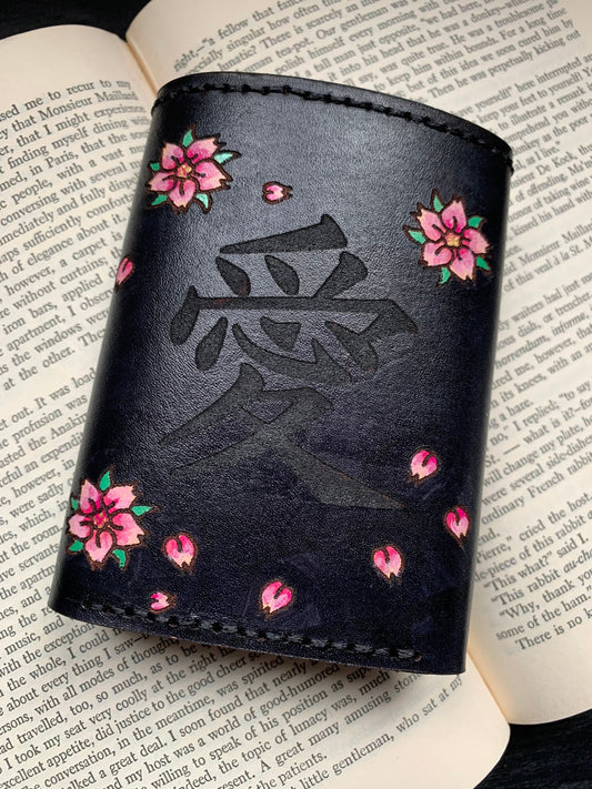 Sakura Love Leather Six Pocket Trifold Wallet