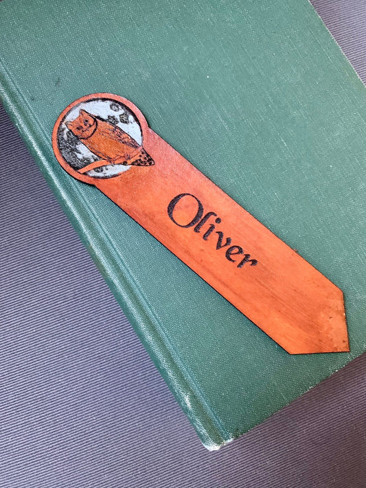 Owl Full Moon Leather Bookmark Personalized Gift